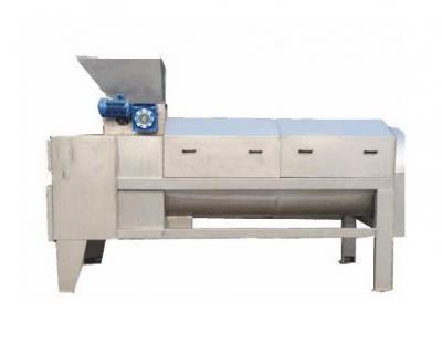 石榴從進料斗進入上壓碎裝置,上壓碎裝置將石榴壓開,下壓碎裝置再次將石榴擠壓,經(jīng)過兩級擠壓的石榴已基本皮籽分離,并落入分離裝置,石榴籽從篩孔落下,皮從尾部排出, 籽及汁用另配的螺桿泵送至下道工序。